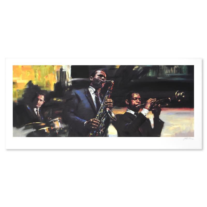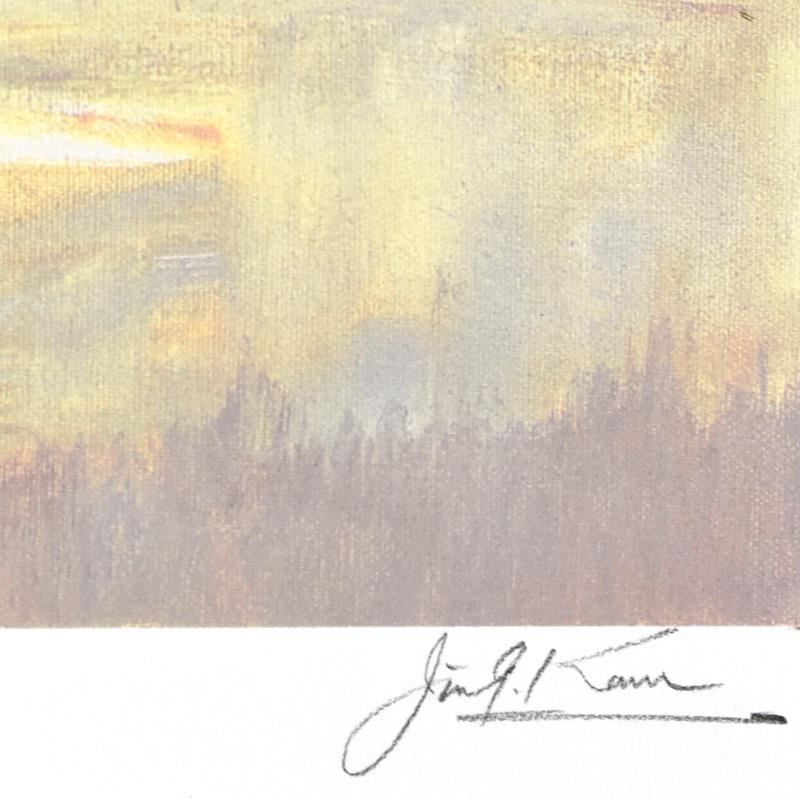 Autumn Blues by Kam, Jin G. "Autumn Blues" is a limited edition serigraph on paper, numbered and hand signed by Jin G Kam. Includes Letter of Authenticity. Measures approx. 48.5" x 32" (border), 44.5" x 25" (image). Please note: there are creases and smud