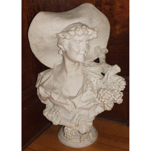 "Autumn". 20th century. A fine carved bust representing the season of autumn in the French style, depicted as a young woman adorned with ripe grape vines, wearing a large brimmed hat. Made of Composite. 28: high