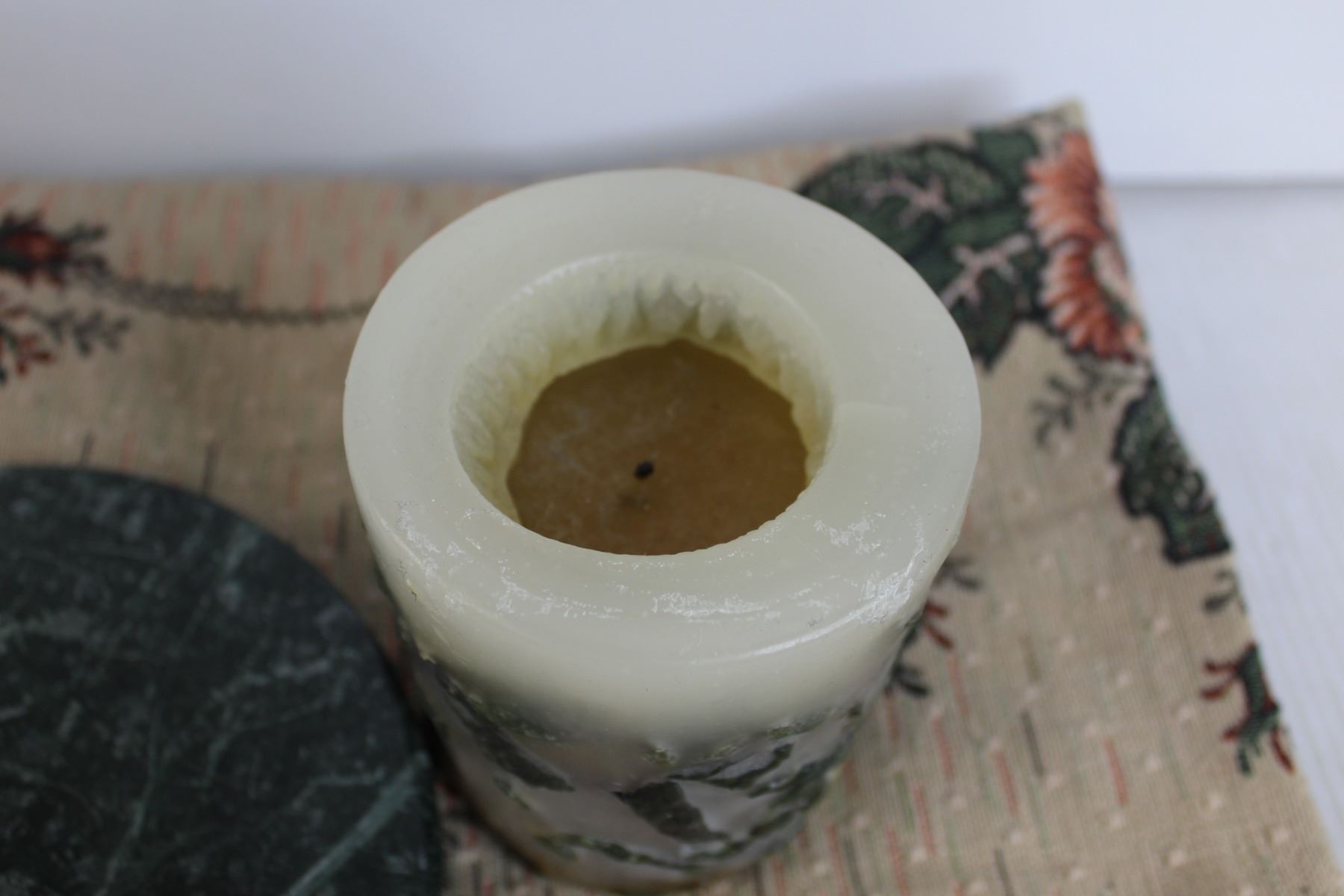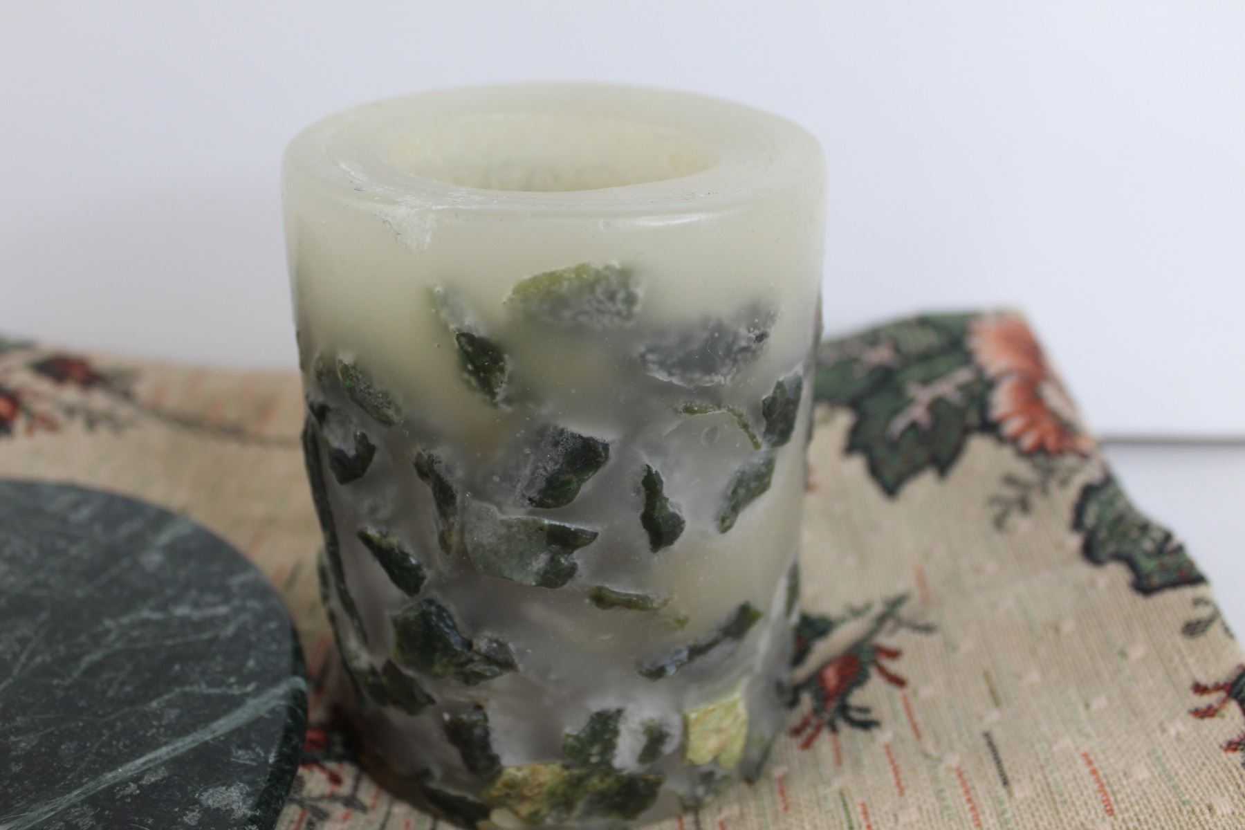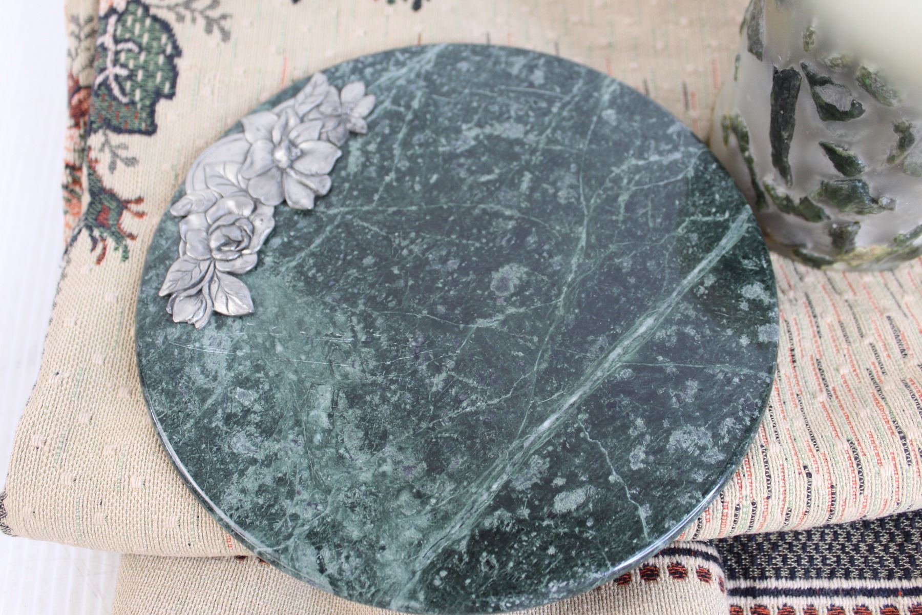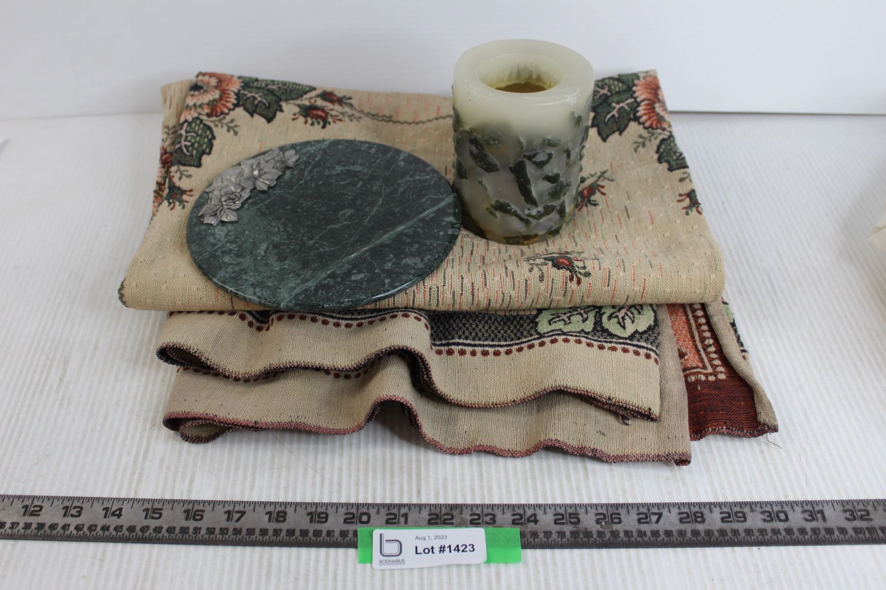 Autumn Tapestry Tablecloth, Raw Jade Stone Candle, Jade and Silver Trivet (Not Authenticated)