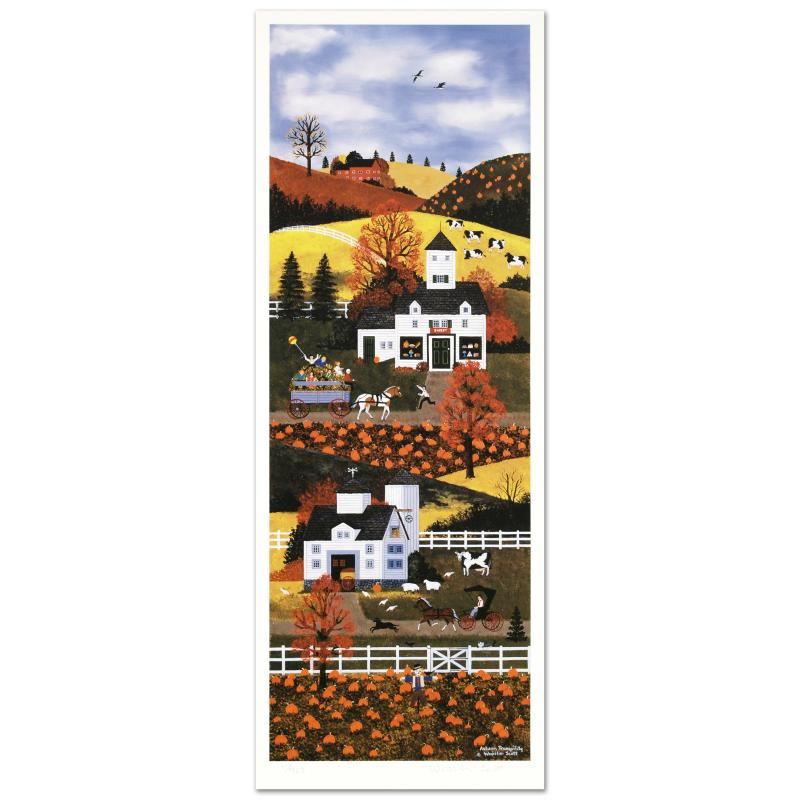 "Autumn Tranquility" is a limited edition lithograph on paper, numbered and hand signed by Jane Wooster Scoot. Includes Certificate of Authenticity! Measures approx. 10" x 26.5" (with border), 9" x 25" (image).
