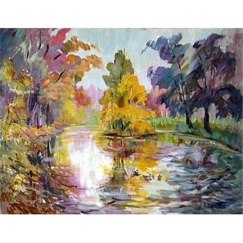 <tr><td>Title:"Autumn pond" oil in impressionism style.</td></tr>