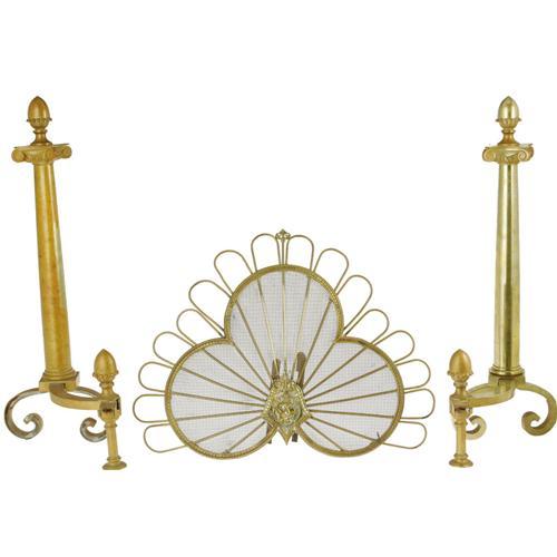 <B>Ava Gardner's Fireplace Andirons and Screen.</B></I> Set of two 27" Spanish-made fireplace andirons and a brass screen, owned and used by Ava. In Excellent condition. <I>From the Ava Gardner Estate.</B></I><BR><BR><b>Shipping:</b> Hollowware/Pottery/Glass, Small (<a target="_blank" href="http://www.heritageauctions.com/common/shipping.php">view shipping information</a>)