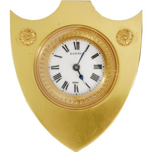 <B>Ava Gardner Gold-Tone Clock.</B></I> A 5" x 4.25" chevron-shaped Serra clock, not currently in working order but otherwise in Excellent condition with a few small scratches. <I>From the Ava Gardner Estate.</B></I><BR><BR><b>Shipping:</b> Hollowware/Pottery/Glass, Small (<a target="_blank" href="http://www.heritageauctions.com/common/shipping.php">view shipping information</a>) <BR><BR><B>Important notice