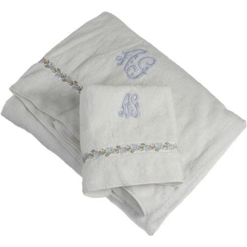 <B>Ava Gardner Owned Bath Linens.</B></I> This offering of sumptuous bath linens includes one white bath sheet and one white hand towel embroidered in light blue with the initials "A.G." Both were owned and used by Ava Gardner. In Excellent condition. <I>From the Ava Gardner Estate.</B></I><BR><BR><b>Shipping:</b> Clothing, Costumes & Jerseys (<a target="_blank" href="http://www.heritageauctions.com/common/shipping.php">view shipping information</a>) <BR><BR><B>Important not