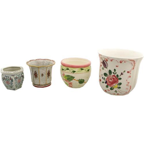 <B>Ava Gardner Owned Planters.</B></I> Includes a hand-painted 3.5" planter with floral design, a 4.5" round planter with pink edging and floral design, a 6.75" round planter with pink floral design, and one vase with gold edging, brown flowers, and crackle design affect. In Excellent condition. <I>From the Ava Gardner Estate.</B></I><BR><BR><b>Shipping:</b> Hollowware/Pottery/Glass, Small (<a target="_blank" href="http://www.heritageauctions.com/common/shipping.php">view shipping information</a>) <BR><BR><B>Important notice