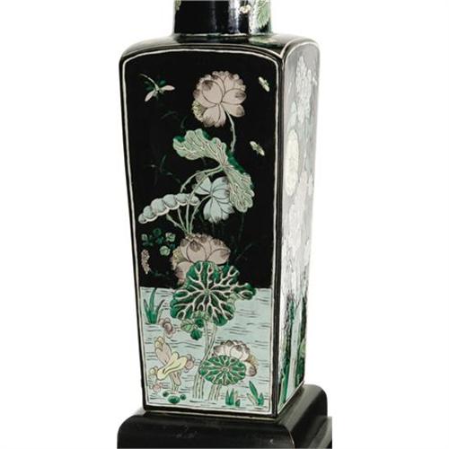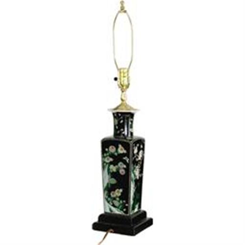 <B>Ava Gardner Owned Porcelain Lamp.</B></I> This beautiful oriental porcelain lamp with wood base was one of a pair kept by Ava in her home on Nichols Canyon, which she owned from the late '40s to early '50s. The lamp later wound up in her sister Bappie's possession after Ava moved to Spain. The lamp can be seen in <I>Architectural Digest</B></I>'s "Hollywood at Home" feature from March 2006 (included). Still in working order, the vase measures 20" from the base to the bulb socket, and is in Very Fine to Excellent condition with some very mild wear to the base and a small chip along the edge of the lip. <I>From the Ava Gardner Estate.</B></I><BR><BR><b>Shipping:</b> Hollowware/Pottery/Glass, Small (<a target="_blank" href="http://www.heritageauctions.com/common/shipping.php">view shipping information</a>)