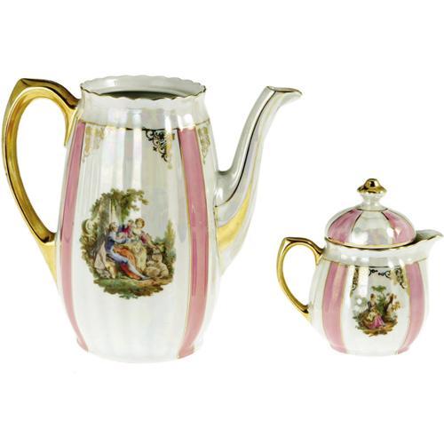<B>Ava Gardner Owned Teapot and Cream Pitcher.</B></I> A white porcelain tea pot with pink and gold design, with matching cream pitcher. In Excellent condition. <I>From the Ava Gardner Estate.</B></I><BR><BR><b>Shipping:</b> Hollowware/Pottery/Glass, Small (<a target="_blank" href="http://www.heritageauctions.com/common/shipping.php">view shipping information</a>)