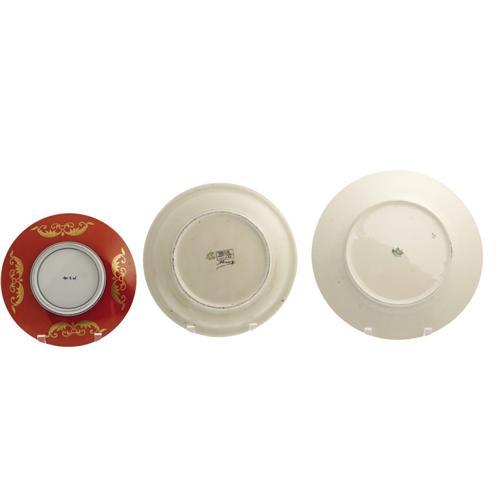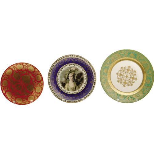 <B>Ava Gardner Owned Wall Plates.</B></I> Set of three decorative wall plates includes one measuring 8" with an orange-and-gold oriental design; one by John Peters measuring 10", in gold and blue with an image of a woman; and one by Peters measuring 11.5" with a gold-and-green design. In Excellent condition. <I>From the Ava Gardner Estate.</B></I><BR><BR><b>Shipping:</b> Hollowware/Pottery/Glass, Small (<a target="_blank" href="http://www.heritageauctions.com/common/shipping.php">view shipping information</a>) <BR><BR><B>Important notice:</
