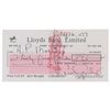 Lloyds Bank Limited check, 6 x 3, filled out and signed by Ava Gardner, payable to A. P. Moraz for £35, July 26, 1977. In fine condition.