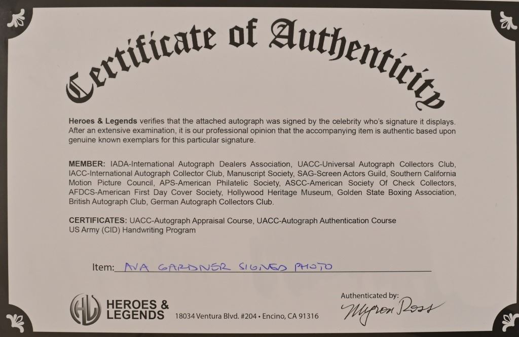 Ava Gardner signed photo. 8x10 inches. HLV39