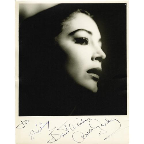 <B>Ava Gardner Signed Photo.</B></I> A stunning portrait of Gardner enshrouded by shadows, signed by her in black ink. In Very Fine to Excellent condition with some light wear and small creases to the corners. <I>From the Ava Gardner Estate.</B></I><BR><BR><b>Shipping:</b> Small Flat (<a target="_blank" href="http://www.heritageauctions.com/common/shipping.php">view shipping information</a>) <BR><BR><B>Important not