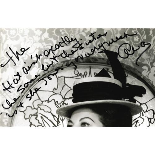 <B>Ava Gardner Signed Picture to Sister.</B></I> A great b&w 8" x 10" photo of Gardner in <I>55 Days at Peking,</B></I> inscribed "The hat ain't exactly the same but the sister is and she loves you very much" and signed by the screen legend in black felt tip. The photo was a gift from Gardner to one of her four sisters, and is in Excellent condition. <I>From the Ava Gardner Estate.</B></I><BR><BR><b>Shipping:</b> Small Flat (<a target="_blank" href="http://www.heritageauctions.com/common/shipping.php">view shipping information</a>)