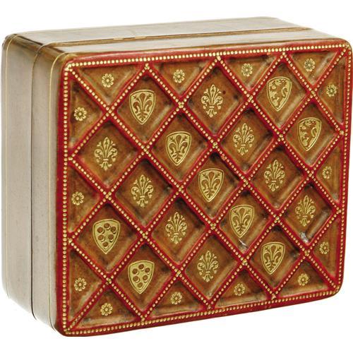 <B>Ava Gardner Wooden Box.</B></I> A 4" x 3" x 2" decorative wooden box with heraldry motif, made in Italy, in Excellent condition. <I>From the Ava Gardner Estate.</B></I><BR><BR><b>Shipping:</b> Hollowware/Pottery/Glass, Small (<a target="_blank" href="http://www.heritageauctions.com/common/shipping.php">view shipping information</a>) <BR><BR><B>Important no