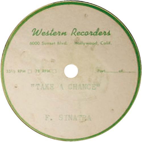 <B>Frank Sinatra "Take A Chance" Acetate (Western Recorders, 1954).</B></I> Condition: VG-EX 6. <I>From the Ava Gardner Estate.</B></I><BR><BR><b>Shipping:</b> Other (oversized items, group lo (<a target="_blank" href="http://www.heritageauctions.com/common/shipping.php">view shipping information</a>)