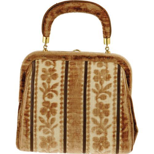 <B>Ava Gardner Owned Roberta di Camerini Bag and Hermès Scarf.</B></I> Ava Gardner's fashion sense was no doubt influenced by her friends and colleagues like Grace Kelly, her co-star in <I>Mogambo,</B></I> who was known to carry Roberta di Camerini bags. This particular example, owned and used by Ava, combines elegant style with functional practicality. In Very Fine condition, the handbag has a single velvet covered handle with a 3" drop, raised velvet tapestry design, leather-lined interior with three interior pockets, and a brass twisting clasp enclosure, and measures 9.5" wide and 8" high. Also included is a 34.5" x 35.5" Hermès silk scarf, made in Paris. With earth-tones, a brown border, and bird-themed design, this sumptuous scarf is in Very Fine condition with minor signs of wear. <I>From the Ava Gardner Estate.</B></I><BR><BR><b>Shipping:</b> Clothing, Costumes & Jerseys (<a target="_blank" href="http://www.heritageauctions.com/common/shipping.php">view shipping information</a>)