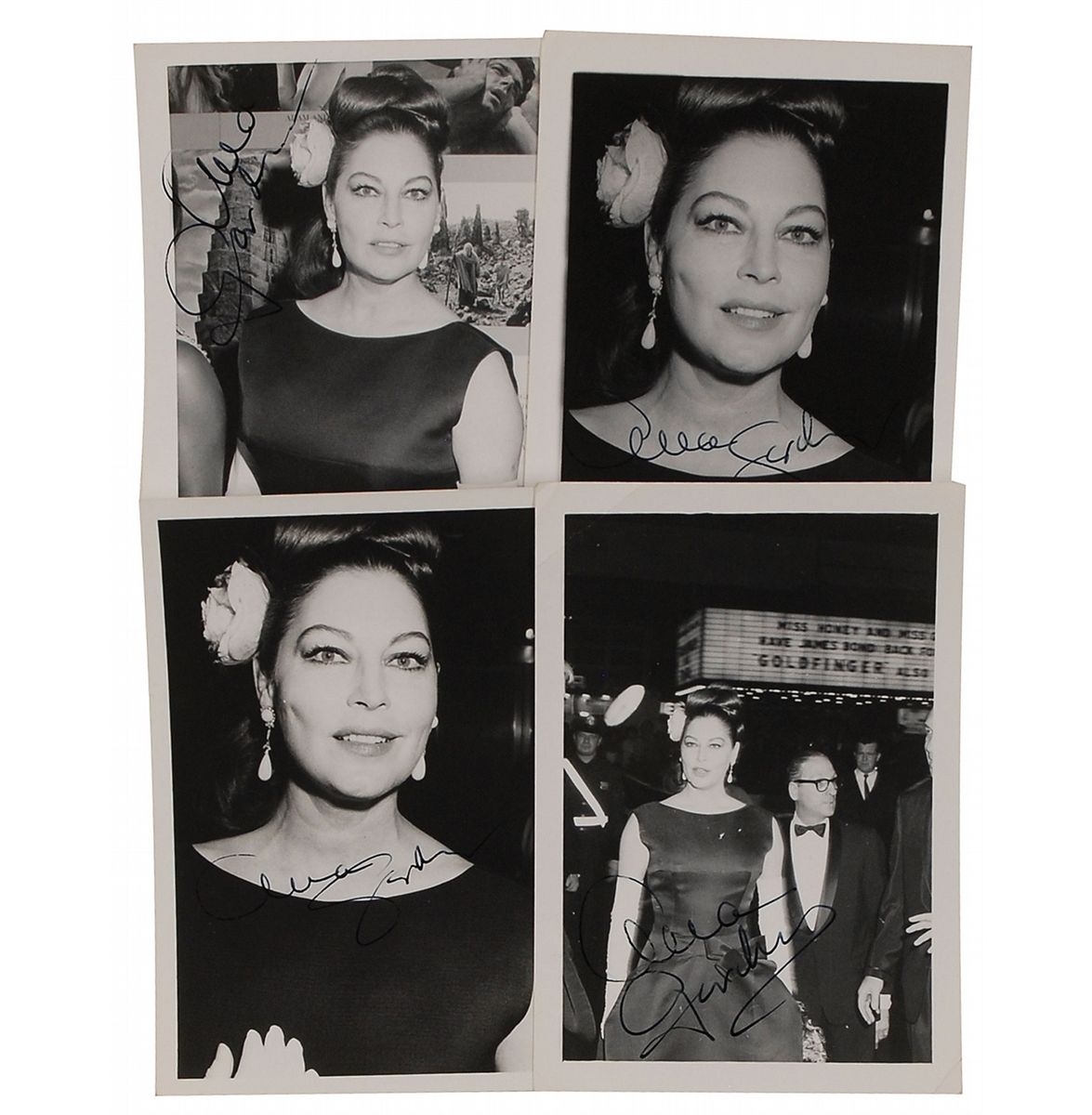 Four vintage original 3.5 x 5 snapshot photos of Gardner from 1966, each signed in fountain pen. In overall fine condition, with a few scattered creases.
