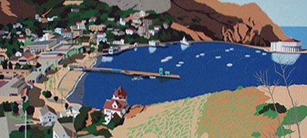 A limited edition 17.5x35 panoramic view of Avalon Harbor, Catalina, CA, by modern artist Armond Fields. Signed with COA