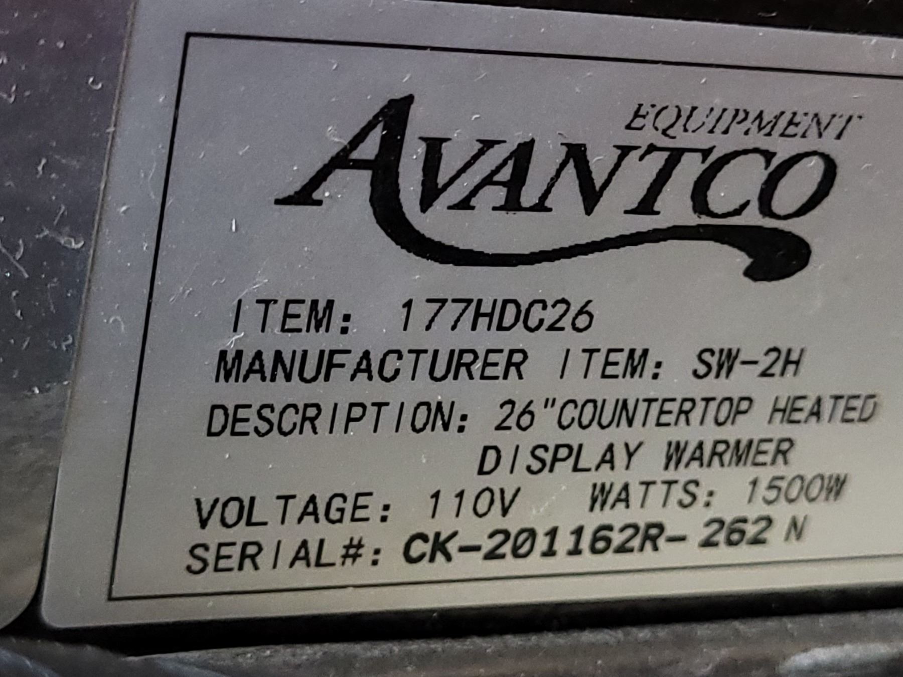 Avantco 26" Countertop Heated Display Warmer | Model 177HDC26 | not ideal for Shipping
