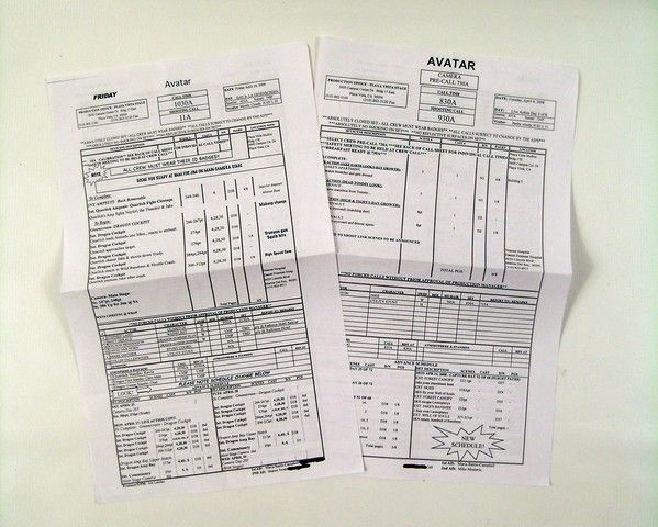 From James Cameron's "Avatar" (2009), the highest grossing film of all time, these are original production on-set Call Sheets.