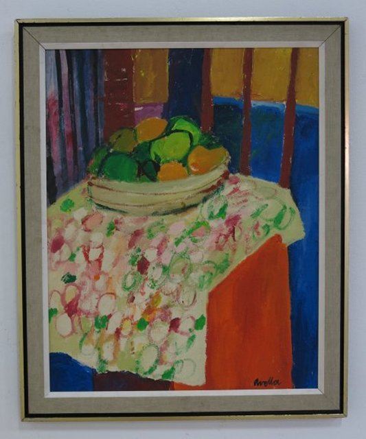 Oil on masonite. Framed. Signed lower right. 20th Century. Approx. 30" H x 24" W unframed, 34" H x 28" W framed. Property of a Bernardsville NJ collection (4069).