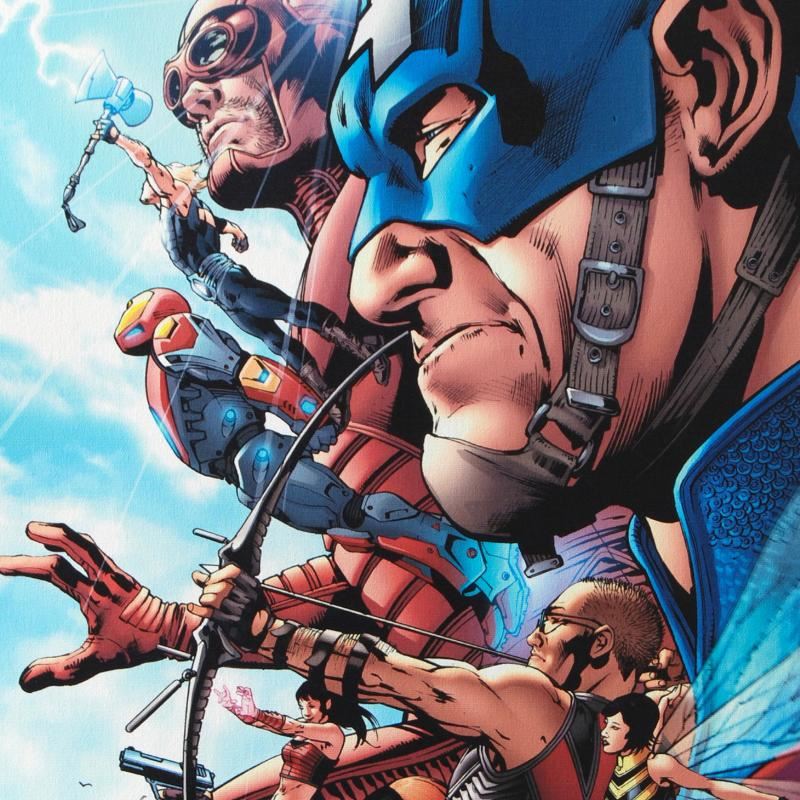 A piece of comic book history, this limited edition, from original art by Bruce Timm, depicts classic Marvel characters. Starting with a thriving career in animation, Bruce Timm has seamlessly transition into his first love, comic book art. Timm has since done work for DC's Batman and Marvel's Avengers. "Avengers #1" is a limited edition numbered giclee on stretched canvas by Bruce Timm presented by Marvel Comics. This piece comes gallery wrapped and ready to hang. Includes Certificate of Authenticity! Measure approx. 18" x 27" (image); 1.5" (depth).