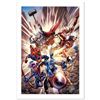 A piece of comic book history, this limited edition, from original art by Bryan Hitch, depicts an adventure packed scene starring Iron Man, Ms. Marvel, Protector and Thor. British artist Bryan Hitch was inspired by comic books at an early age. Not only has Hitch worked on the The Avengers, Captain America, and She-Hulk, but he also did the character design for the Ultimate Avengers and Ultimate Avengers 2 animated films. "Avengers #12.1" is a limited edition giclee on canvas by Bryan Hitch presented by Marvel Comics, numbered and hand signed by the great Stan Lee! Includes Certificate of Authenticity! Measures approx. 18" x 27" (image).