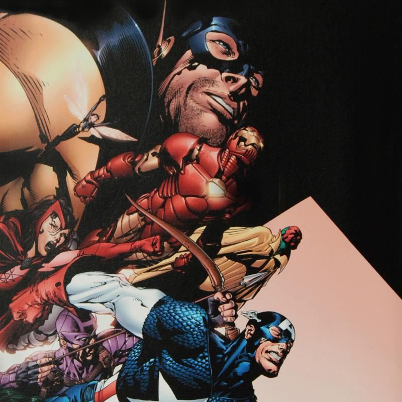 A piece of comic book history, this limited edition, from original art by David Finch, depicts Captain America and other characters from the Marvel Universe. In 2003, Finch came to Marvel Comics for a year-long arc on Ultimate X-Men, after which he began work on The Avengers and thereafter The New Avengers. He has also worked on such titles as Captain America, Spider-Man and the Hulk. "Avengers #500" is an extremely limited edition giclee on canvas by David Finch presented by Marvel Comics, hand signed by the great Stan Lee and numbered out of only 10!This piece comes custom framed and ready to hang. Includes Certificate of Authenticity! Measures approx. 25" x 34" (with frame), 18" x 27" (image).