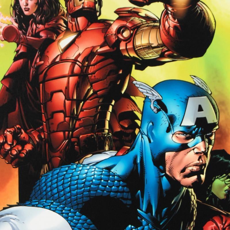 A piece of comic book history, this limited edition, from original art by David Finch, depicts the heroic Scarlet Witch, Captain America, Iron Man, and She-Hulk. In 2003, Finch came to Marvel Comics for a year-long arc on Ultimate X-Men, after which he began work on The Avengers and thereafter The New Avengers. He has also worked on such titles as Captain America, Spider-Man and the Hulk. "Avengers #501" is a limited edition numbered giclee on canvas by David Finch presented by Marvel Comics. This piece comes gallery wrapped. Includes Certificate of Authenticity! Measure approx. 18" x 27" (image).
