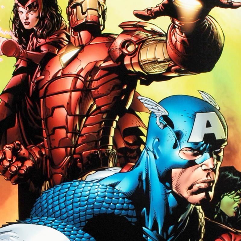 A piece of comic book history, this limited edition, from original art by David Finch, depicts the heroic Scarlet Witch, Captain America, Iron Man, and She-Hulk. In 2003, Finch came to Marvel Comics for a year-long arc on Ultimate X-Men, after which he began work on The Avengers and thereafter The New Avengers. He has also worked on such titles as Captain America, Spider-Man and the Hulk. "Avengers #501" is an extremely limited edition giclee on canvas by David Finch presented by Marvel Comics, hand signed by the great Stan Lee and numbered out of only 10! This piece comes custom framed and ready to hang. Includes Certificate of Authenticity! Measures approx. 25" x 34" (with frame); 18" x 27" (image).