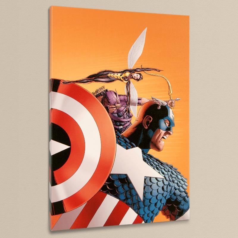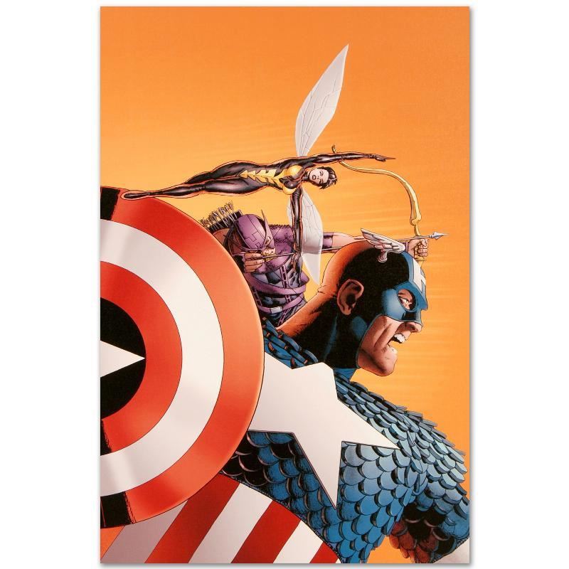 A piece of comic book history, this limited edition, from original art by John Cassaday, depicts the Captain America, Wasp and Hawkeye. Starting his work for Marvel in 1997, John Cassaday is best known for his work on Astonishing X-Men with Joss Whedon and Captain America with John Ney Rieber. "Avengers #77" is a limited edition numbered giclee on stretched canvas by John Cassaday presented by Marvel Comics. This piece comes gallery wrapped. Includes Certificate of Authenticity! Measures approx. 18" x 27" (image); 1.5" (depth).