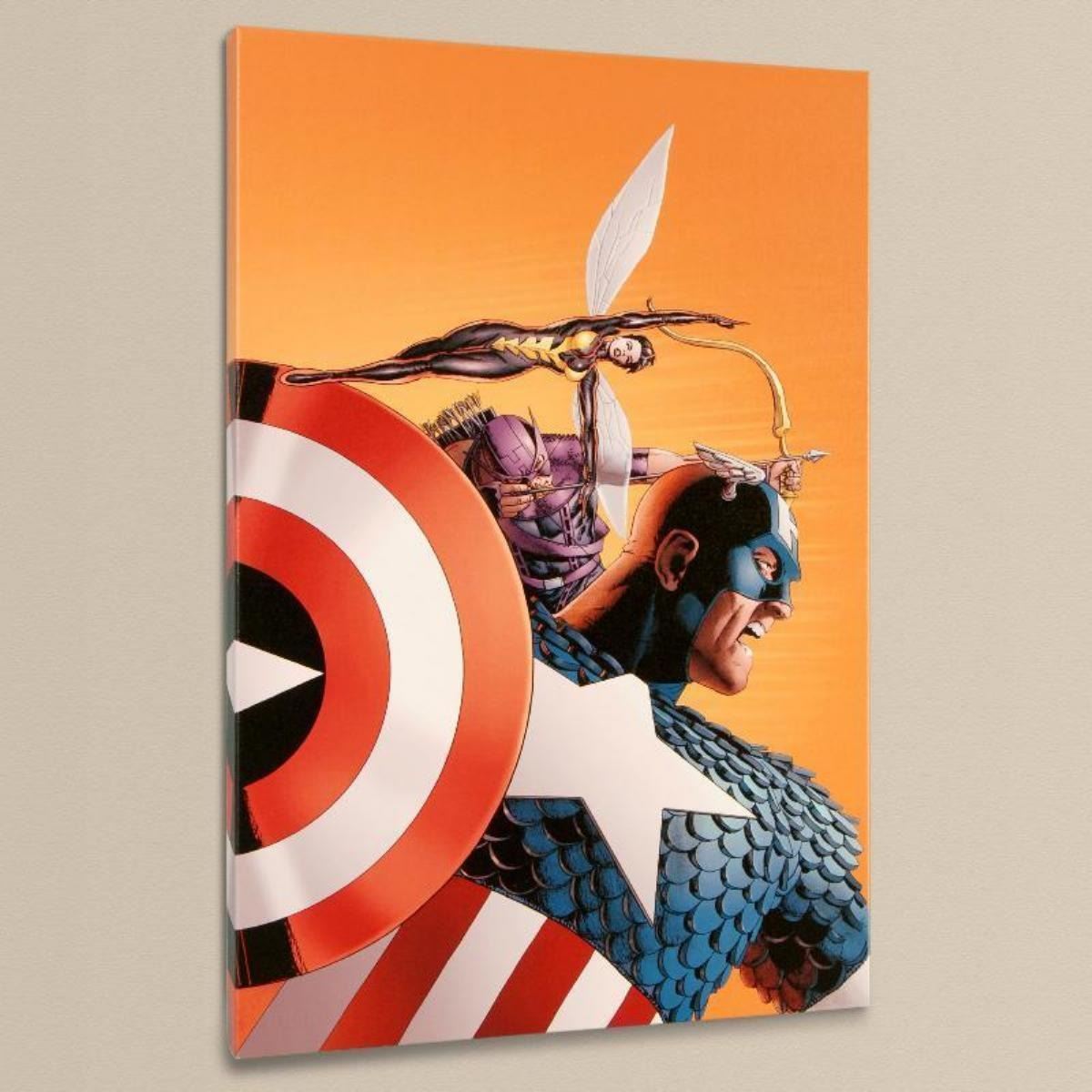 A piece of comic book history, this limited edition, from original art by John Cassaday, depicts the Captain America, Wasp and Hawkeye. Starting his work for Marvel in 1997, John Cassaday is best known for his work on Astonishing X-Men with Joss Whedon and Captain America with John Ney Rieber. "Avengers #77" is a limited edition numbered giclee on stretched canvas by John Cassaday presented by Marvel Comics. This piece comes gallery wrapped. Includes Certificate of Authenticity! Measures approx. 18" x 27" (image); 1.5" (depth).