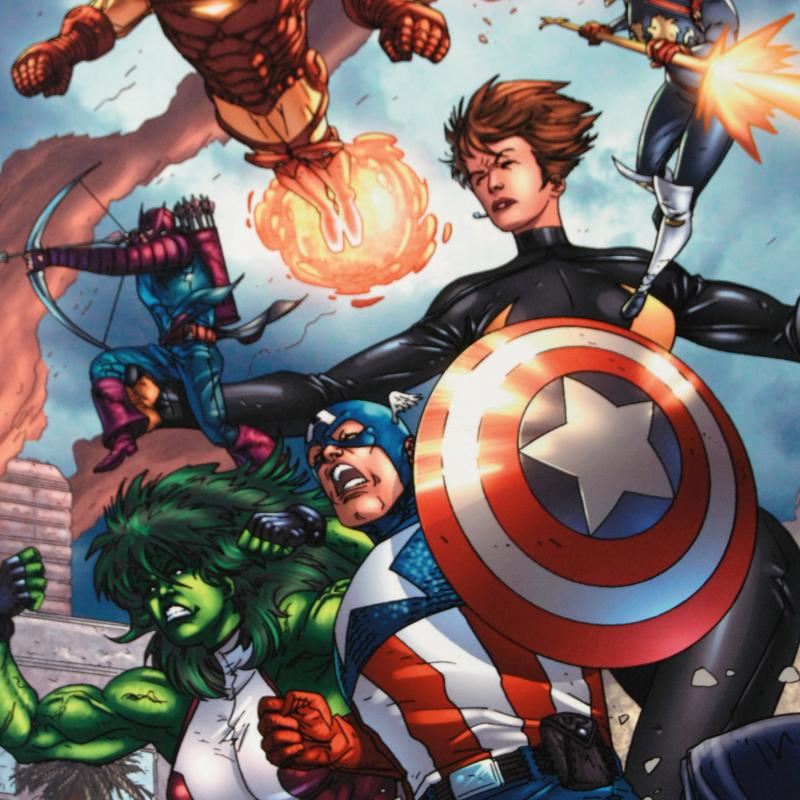 A piece of comic book history, this limited edition, from original art by Scott Kolins, depicts Lionheart, Hawkeye, Iron Man, Captain America, She-Hulk and Wasp. Kolins' interest in drawing and comics began when he was around 10 years old as an avid comic book reader in the late 1970s. In 1991 he went to New Jersey to The Kubert School where he attended 2 years and then got a job with Valiant Comics. He was then hired as a Romita Raider (in house art corrections under John Romita Sr.) at Marvel Comics. "Avengers #84" is a limited edition numbered giclee on canvas by Scott Kolins presented by Marvel Comics. This piece comes gallery wrapped. Includes Certificate of Authenticity! Measure approx. 18" x 27" (image).