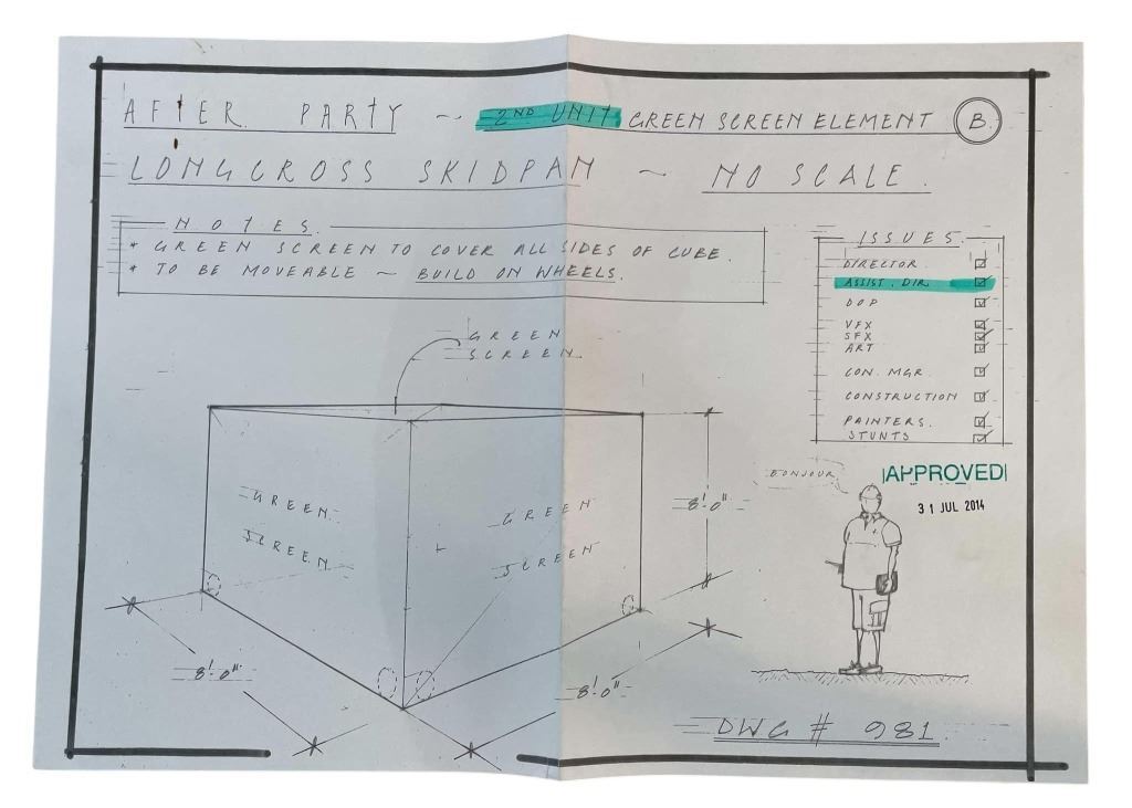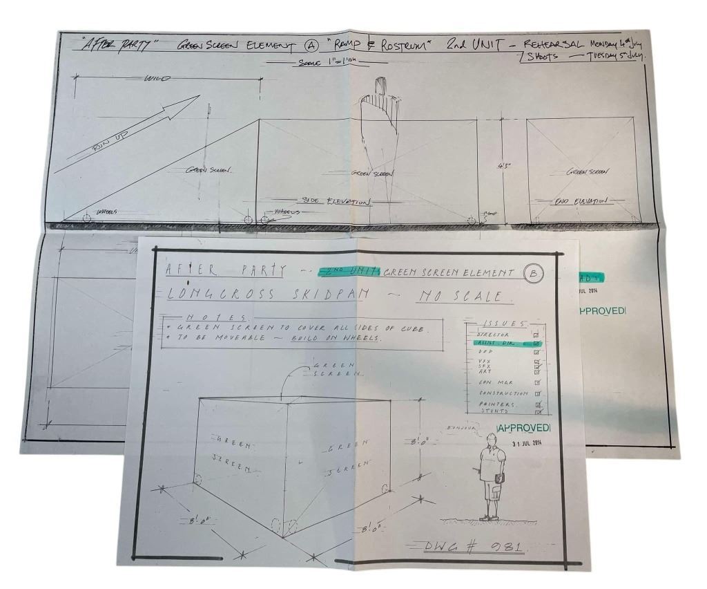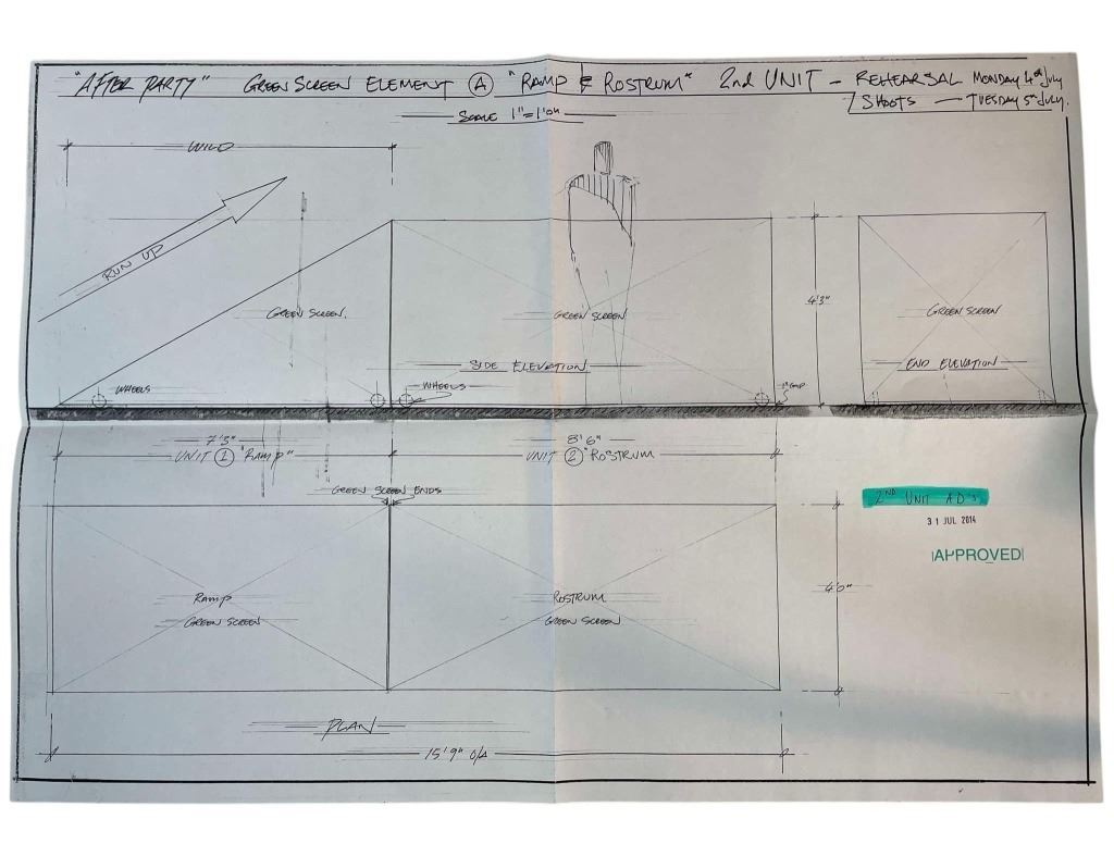 Original set of two blueprints used by the production crew on the superhero film 'Avengers: Age of Ultron' (2015).
