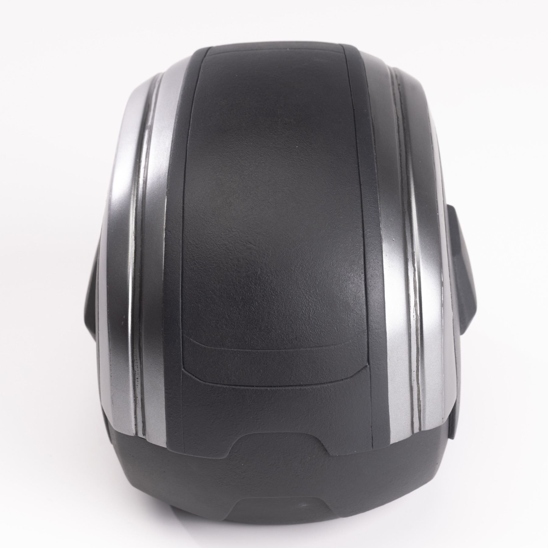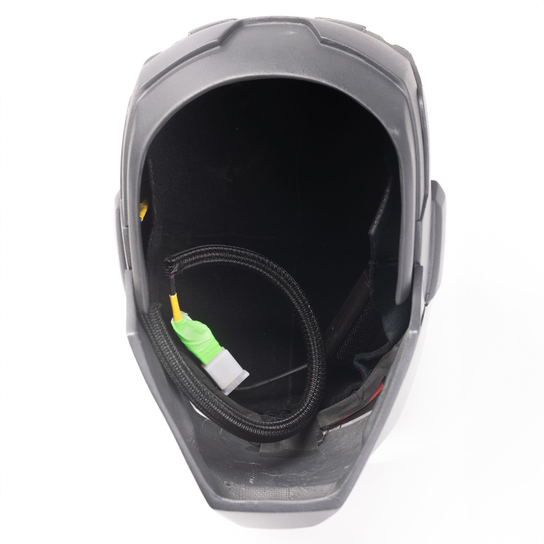 War Machine (James Rhodes) actor Don Cheadle was introduced in the first Iron Man film and became an integral part of the Avengers and a key player in the Avengers sequel. This helmet, an upgraded design from the version seen in the first two Iron Man films is made of fiberglass and features a removable neck section attached by magnets. The interior of the helmet is padded for the actor's comfort and features LED lights with a cord attached to a small battery pack. The helmet features intricate cast-in detailing and is painted a gun metal grey with two different tones of metallic silver on the faceplate and red detailing around the white acrylic eyes. The faceplate for this helmet is not removable and features two slits under the light-up eyes for the actor to see through. This remains in excellent, production-used condition. Comes with a COA from Studio Auctions.