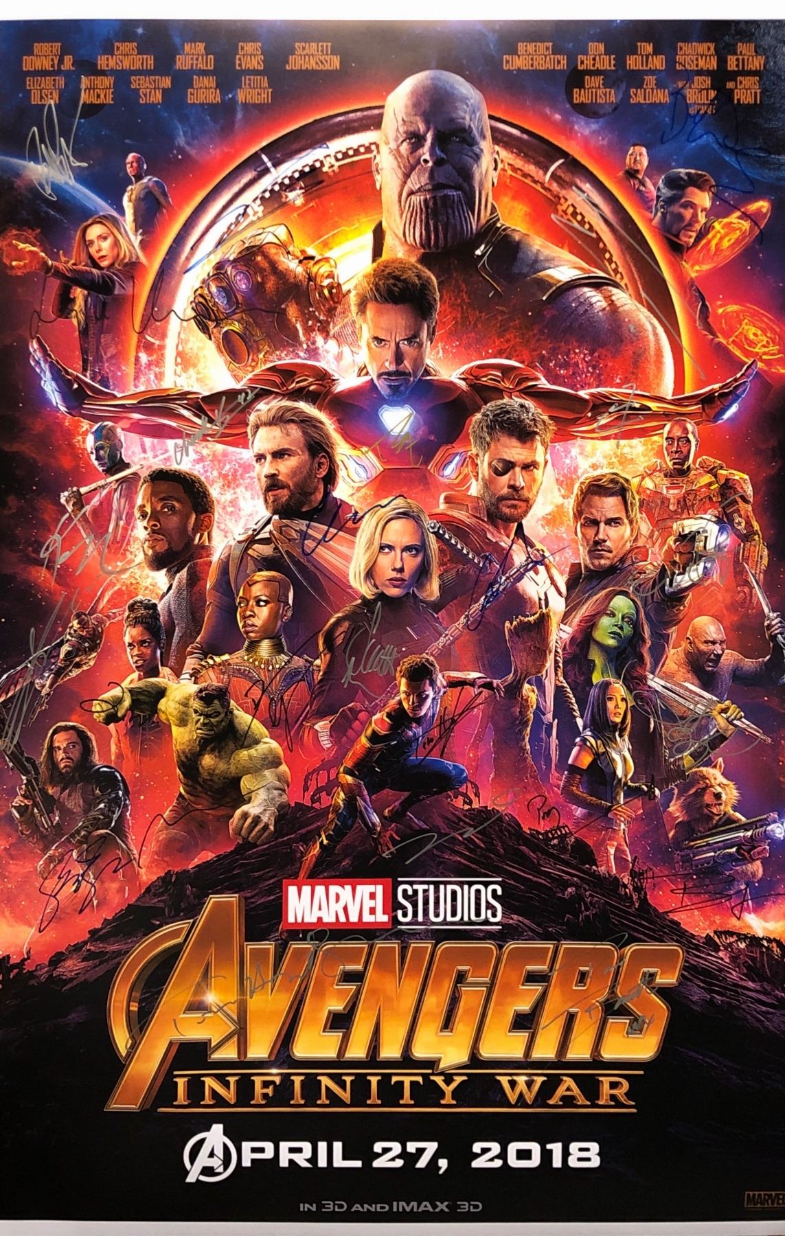 Robert Downey Jr., Chadwick Boseman, Chris Hemsworth, Elizabeth Olsen, Sebastian Stan, Karen Gillan, Scarlett Johansson, Tom Hiddleston, Benedict Cumberbatch, Tom Holland, Chris Pratt, Zoe Saldana, Vin Diesel, Dave Bautista, Bradley Cooper, Paul Bettany, Mark Ruffalo, Don Cheadle, Anthony Mackie, Danai Gurira, Letitia Wright, Pom Klementieff, Benedict Wong