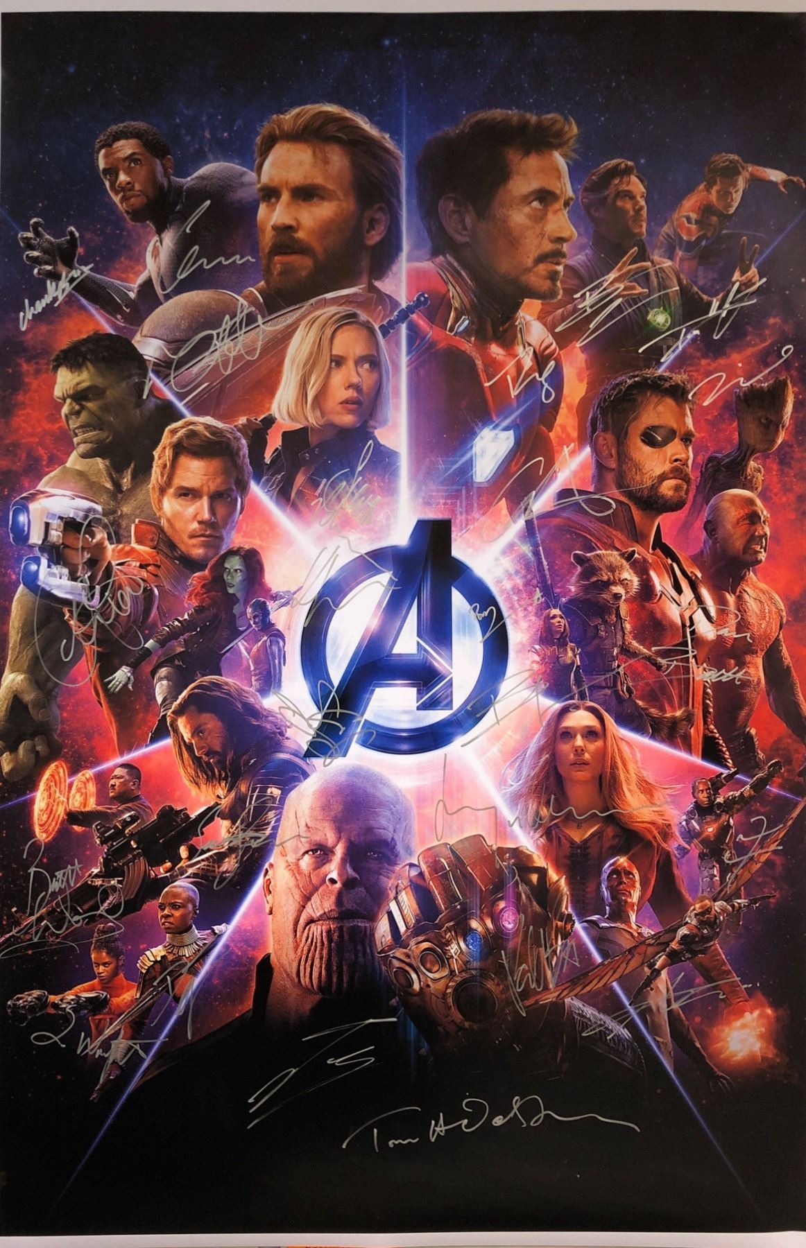 Robert Downey Jr., Chadwick Boseman, Chris Hemsworth, Elizabeth Olsen, Sebastian Stan, Karen Gillan, Scarlett Johansson, Tom Hiddleston, Benedict Cumberbatch, Tom Holland, Chris Pratt, Zoe Saldana, Vin Diesel, Dave Bautista, Bradley Cooper, Paul Bettany, Mark Ruffalo, Don Cheadle, Anthony Mackie, Danai Gurira, Letitia Wright, Pom Klementieff, Benedict Wong