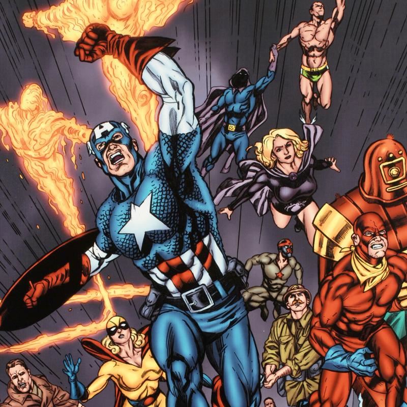 A piece of comic book history, this limited edition, from original art by Steve Sadowski, depicts the classic characters Captain America, The Human Torch, and Black Widow, among others. Obsessed with comic from an early age, Steve Sadowski now does the artwork for the Avengers/Invader series. "Avengers/Invader #11" is a limited edition giclee on canvas by Steve Sadowski presented by Marvel Comics, numbered and hand signed by the great Stan Lee! Includes Certificate of Authenticity! Measures approx. 18" x 27" (image).
