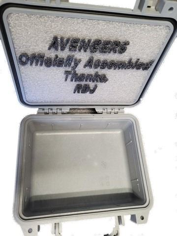 Avengers (2012) - Pelican Case crew gift from Robert Downey Jr. Comes direct from a crew member on the first Avengers film and was given to the crew directly from Robert Downey Jr. (11"x 11"x 4")