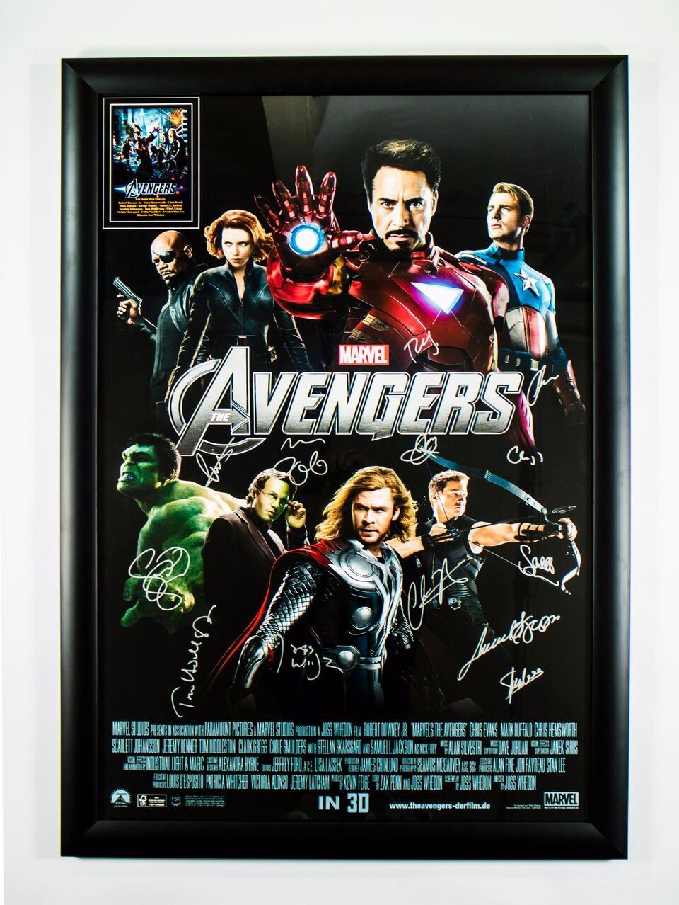 "The Avengers"Movie Poster with original signatures by: Robert Downey Jr, Chris Hemsworth, Chris Evans, Mark Ruffalo, Jeremy Renner, Samuel L Jackson, Scarlett Johansson, Tom Hiddleston, Clark Gregg, Stellan Skarsgard, Cobie Smulders, Creator Stan Lee, Director Joss Whedon. This item comes with a Certificate of Authenticity from a third party authenticator. This Certification of Authenticity does not imply that the item will be certified by any other rival authentication companies. The accompanied certification is the only certification the auction company can confirm. These items are being sold as collectable pieces and there is no guarantee that this item can be resold on any online marketplace. Each of these companies has their own policies and politics.