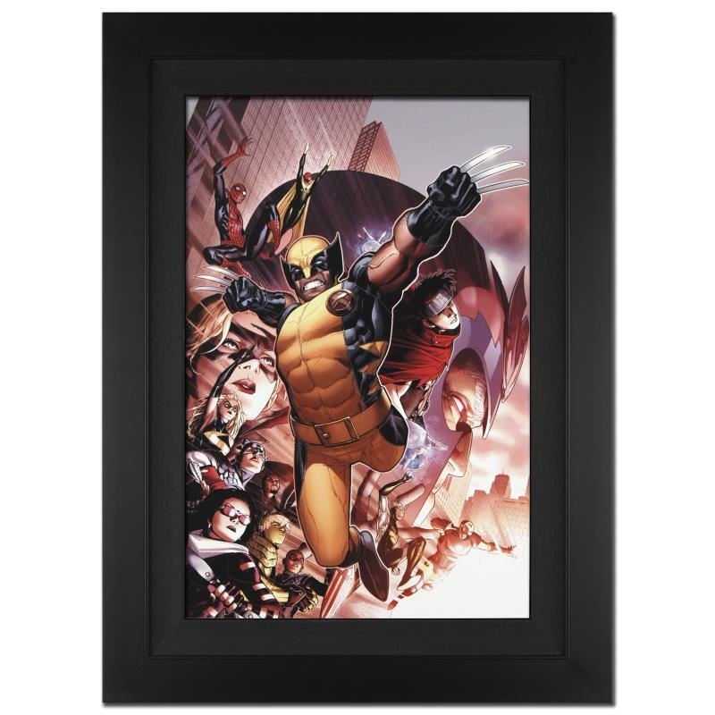 A piece of comic book history, this limited edition, from original art by Jim Cheung, depicts the classic characters Wolverine, Wiccan, and Magneto. Jim Cheung was named as one of 2005's "Young Guns" by Marvel Editor-in-Chief Joe Quesada, and has been described as a "future superstar penciller." "Avengers: The Children's Crusade #2" is an extremely limited edition giclee on canvas by Jim Cheung presented by Marvel Comics, hand signed by the Great Stan Lee (1922-2018) and numbered out of only 10! This piece comes custom framed and ready to hang. Includes Certificate of Authenticity! Measures approx. 25" x 34" (with frame), 18" x 27" (image).