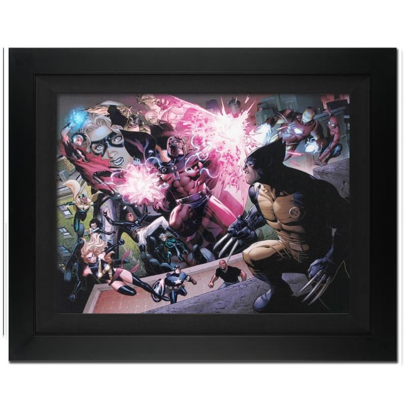 A piece of comic book history, this limited edition, from original art by Jim Cheung, depicts Hulkiling, Wiccan, and Magneto, Ms. Marvel, Captain America, Wolverine and many other Marvel characters. Jim Cheung was named as one of 2005's "Young Guns" by Marvel Editor-in-Chief Joe Quesada, and has been described as a "future superstar penciller." "Avengers: The Children's Crusade #2" is an extremely limited edition giclee on canvas by Jim Cheung presented by Marvel Comics, hand signed by the Great Stan Lee (1922-2018) and numbered out of only 10! This piece comes custom framed and ready to hang. Includes Certificate of Authenticity! Measures approx. 31" x 25" (with frame), 24" x 18" (image).