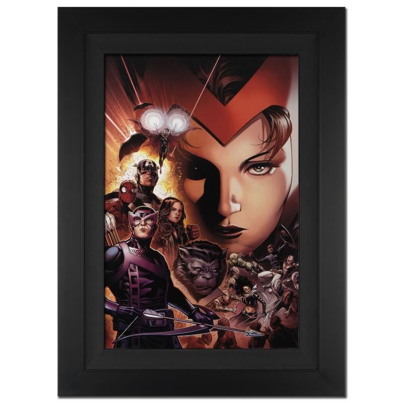 A piece of comic book history, this limited edition, from original art by Jim Cheung, depicts many classic Marvel characters. Jim Cheung was named as one of 2005's "Young Guns" by Marvel Editor-in-Chief Joe Quesada, and has been described as a "future superstar penciller." "Avengers: The Children's Crusade #6" is an extremely limited edition giclee on canvas by Jim Cheung presented by Marvel Comics and hand signed by the Great Stan Lee (1922-2018) and numbered out of only 4! This piece was custom framed and ready to hang. Includes Certificate of Authenticity! Measures approx. 29" x 40" (with frame), 22" x 33" (image).