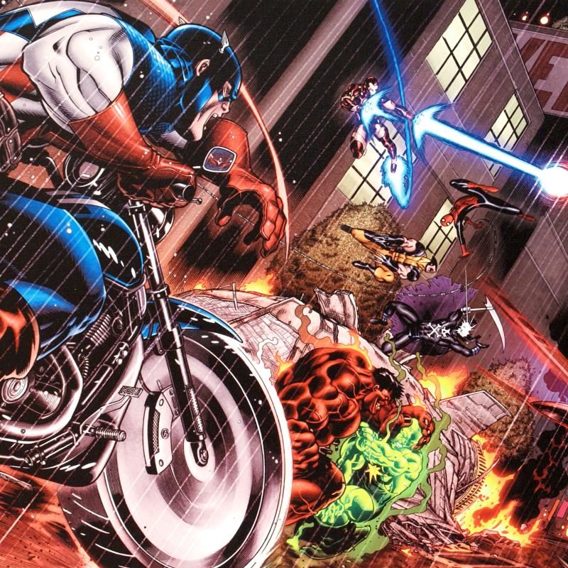 A piece of comic book history, this limited edition print, drawn by Ed McGuinness, features the duo of Captain America and his long time friend Bucky. In May 2006, McGuinness signed an exclusive two-year contract with Marvel Comics. His first printed Marvel piece was a cover for the Marvel limited series Civil War. He is best known for his work on the "Red Hulk" series. "Avengers: X-Sanction #1" is a limited edition giclee on canvas by Ed McGuinness presented by Marvel Comics, hand signed by the great Stan Lee! Includes Certificate of Authenticity! Measures approx. 27" x 18" (image).