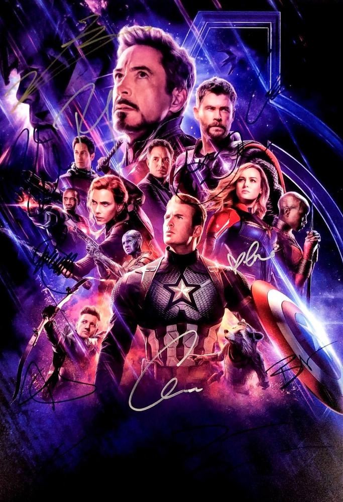 Avengers cast signed movie photo autographed by Josh Brolin, Robert Downey Jr, Chris Evans, Chris Hemsworth, Paul Rudd, Scarlett Johansson, Jeremy Renner, Brie Larson, Danai Gurira, Mark Ruffalo. Bradley Cooper and Karen Gillan. 8x10 inches.