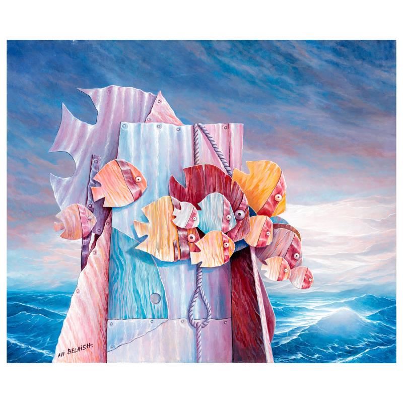 This is an original acrylic painting on stretched canvas by Avi Belaish, hand signed by the artist. Includes Letter of Authenticity. Measures approx. 40" x 48" (image). ** Please note: there are faint scuffs along the top border of the image, as well as minor wear on the corners and edges. **