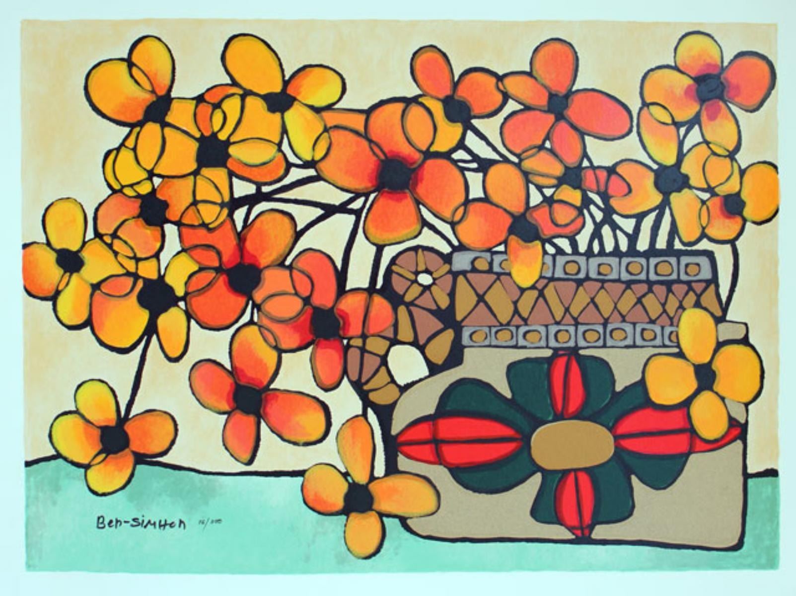 Avi Ben-Simhon Autumn. Artist: Avi Ben-Simhon - Title: Autumn - Medium: Serigraph on Paper - Signature: Hand-signed by the Artist - Edition: 390 - Image Size: Approximately 20 ½ inches x 28 inches - Paper Size: Approximately 22 ½ inches x 30 ¼ inches - Unframed - Details: This work comes with a Certificate of Authenticity - Biography: Avi Ben-Simhon has been deeply inspired by Fauvist and Cubist painters, while creating his signature, unmistakable style. The element of design is strongly developed in his work, in composition and pallet, while the dramatic shapes and vibrant colors powerfully express his joie de vivre. His spiral-like motifs echo his Moroccan roots, each pattern forming an exceptional design in bright and effervescent colors.