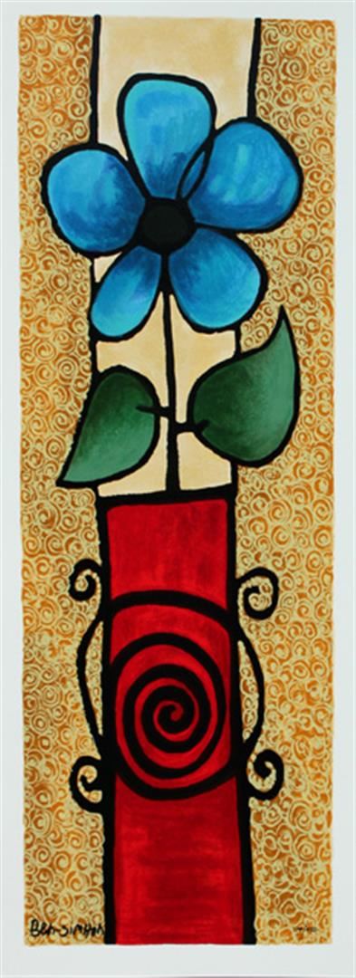 Avi Ben-Simhon Bud Vase. Artist: Avi Ben-Simhon - Title: Bud Vase - Medium: Serigraph on Paper - Signature: Hand-signed by the Artist - Edition: PP 50 - Image Size: Approximately 26 ½ inches x 8 ½ inches - Paper Size: Approximately 28 ½ inches x 10 ½ inches - Unframed - Details: This work comes with a Certificate of Authenticity - Biography: Avi Ben-Simhon has been deeply inspired by Fauvist and Cubist painters, while creating his signature, unmistakable style. The element of design is strongly developed in his work, in composition and pallet, while the dramatic shapes and vibrant colors powerfully express his joie de vivre. His spiral-like motifs echo his Moroccan roots, each pattern forming an exceptional design in bright and effervescent colors.