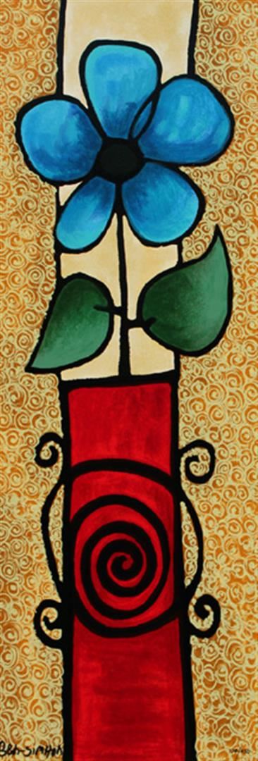 Avi Ben-Simhon Bud Vase. Artist: Avi Ben-Simhon - Title: Bud Vase - Medium: Serigraph on Paper - Signature: Hand-signed by the Artist - Edition: PP 50 - Image Size: Approximately 26 ½ inches x 8 ½ inches - Paper Size: Approximately 28 ½ inches x 10 ½ inches - Unframed - Details: This work comes with a Certificate of Authenticity - Biography: Avi Ben-Simhon has been deeply inspired by Fauvist and Cubist painters, while creating his signature, unmistakable style. The element of design is strongly developed in his work, in composition and pallet, while the dramatic shapes and vibrant colors powerfully express his joie de vivre. His spiral-like motifs echo his Moroccan roots, each pattern forming an exceptional design in bright and effervescent colors.
