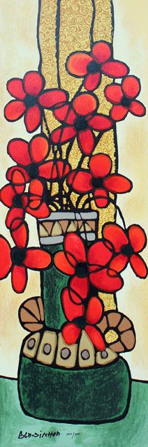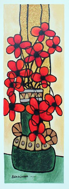 Avi Ben-Simhon Garden Gems. Artist: Avi Ben-Simhon - Title: Garden Gems - Medium: Serigraph on Paper - Signature: Hand-signed by the Artist - Edition: 395 - Image Size: Approximately 26 ½ inches x 9 inches - Paper Size: Approximately 29 inches x 11 ¼ inches - Unframed - Details: This work comes with a Certificate of Authenticity - Biography: Avi Ben-Simhon has been deeply inspired by Fauvist and Cubist painters, while creating his signature, unmistakable style. The element of design is strongly developed in his work, in composition and pallet, while the dramatic shapes and vibrant colors powerfully express his joie de vivre. His spiral-like motifs echo his Moroccan roots, each pattern forming an exceptional design in bright and effervescent colors.