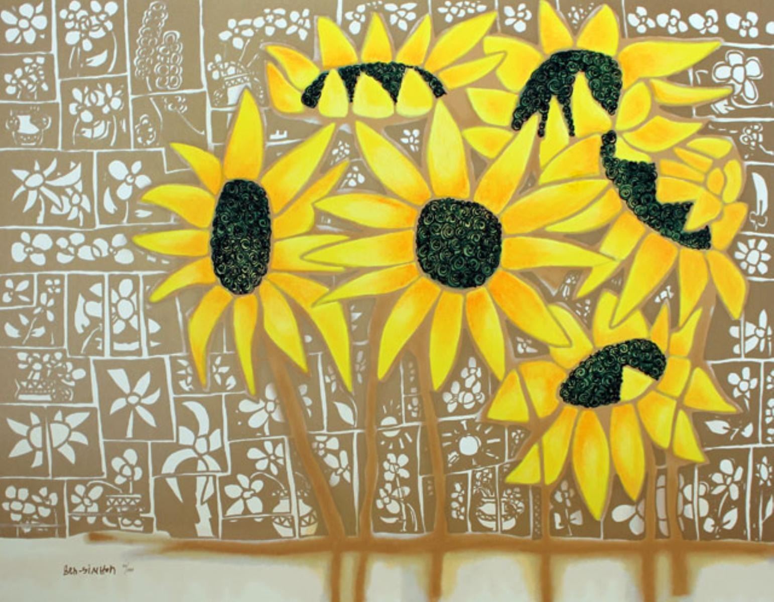 Avi Ben-Simhon Golden Wonder. Artist: Avi Ben-Simhon - Title: Golden Wonder - Medium: Serigraph on Canvas - Signature: Hand-signed by the Artist - Edition: DLX 145 - Image Size: Approximately 35 inches x 47 inches - Unframed - Details: This work comes with a Certificate of Authenticity - Biography: Avi Ben-Simhon has been deeply inspired by Fauvist and Cubist painters, while creating his signature, unmistakable style. The element of design is strongly developed in his work, in composition and pallet, while the dramatic shapes and vibrant colors powerfully express his joie de vivre. His spiral-like motifs echo his Moroccan roots, each pattern forming an exceptional design in bright and effervescent colors.
